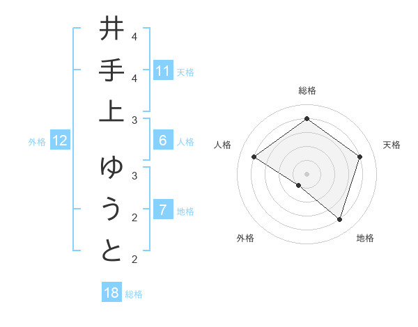井手上 ゆうとさんを姓名の画数から五運を鑑定