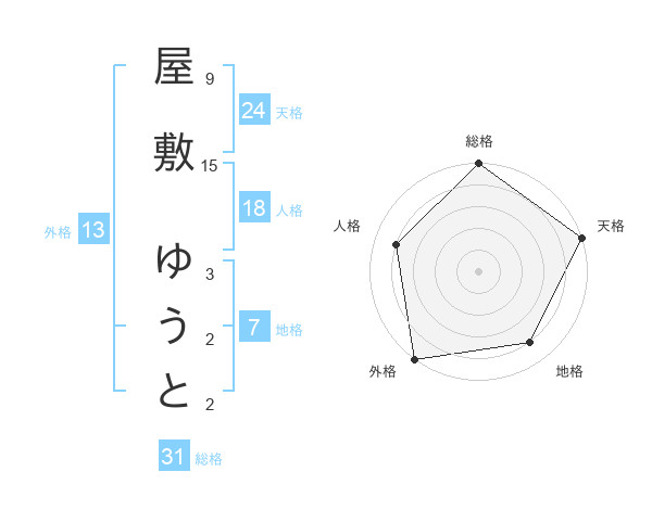 屋敷 ゆうとさんを姓名の画数から五運を鑑定
