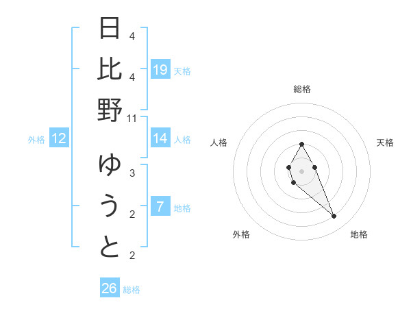 日比野 ゆうとさんの地格は7画の4点!