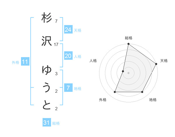 杉沢 ゆうとさんの総格は31画の5点!