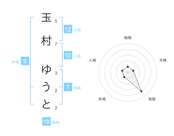 玉村 ゆうとさんの天格は12画の1点!