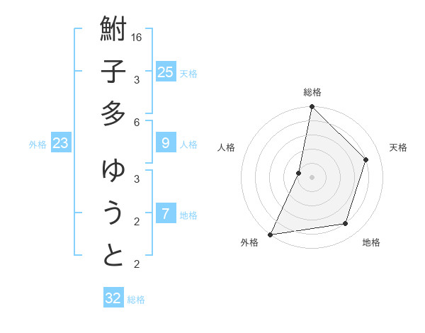 鮒子多 ゆうとさんを姓名の画数から五運を鑑定