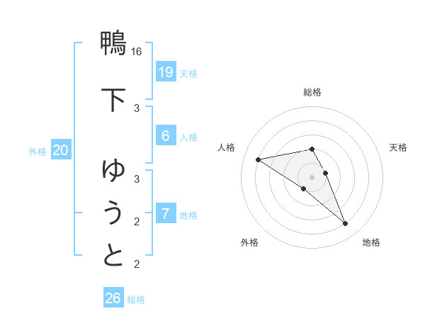 鴨下 ゆうとさんの総格は26画の2点!