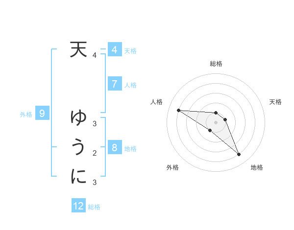 天 ゆうにさんを姓名の画数から五運を鑑定