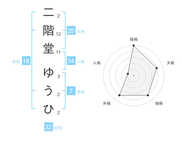二階堂 ゆうひさんを姓名の画数から五運を鑑定