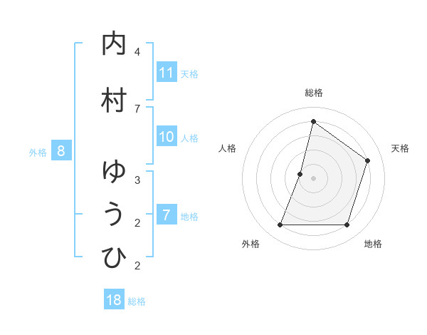 内村 ゆうひさんを姓名の画数から五運を鑑定