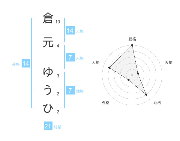 倉元 ゆうひさんの総格は21画の5点!