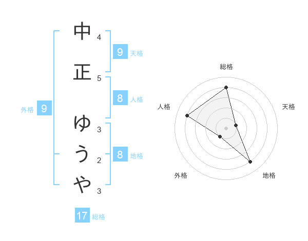 中正 ゆうやさんを姓名の画数から五運を鑑定