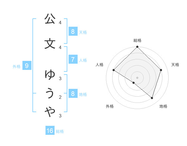 公文 ゆうやさんの外格は9画の1点