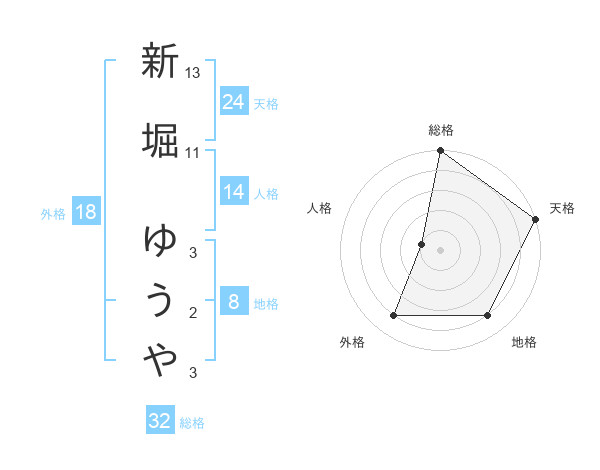 新堀 ゆうやさんを姓名の画数から五運を鑑定