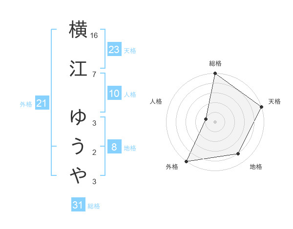 横江 ゆうやさんの天格は23画の5点!