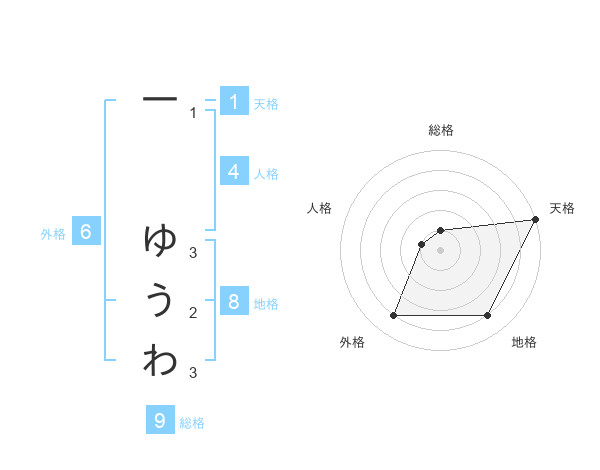 一 ゆうわさんの地格は8画の4点!