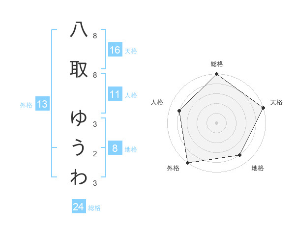 八取 ゆうわさんの外格は13画の5点!