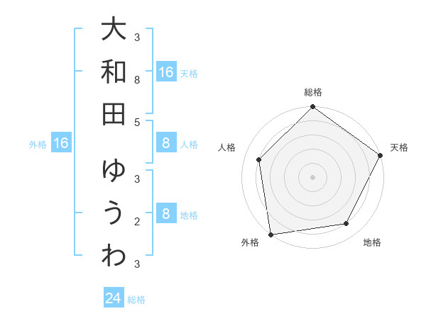 大和田 ゆうわさんを姓名の画数から五運を鑑定