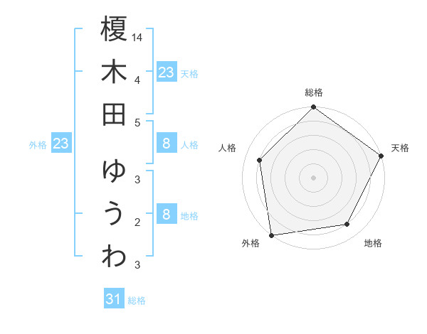 榎木田 ゆうわさんを姓名の画数から五運を鑑定