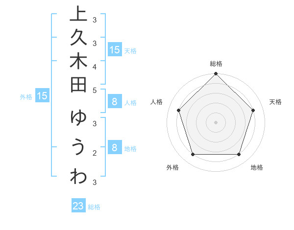 上久木田 ゆうわさんの総格は23画の5点