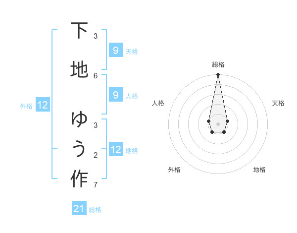 下地 ゆう作さんを姓名の画数から五運を鑑定