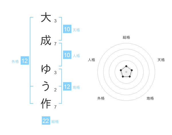 大成 ゆう作さんを姓名の画数から五運を鑑定