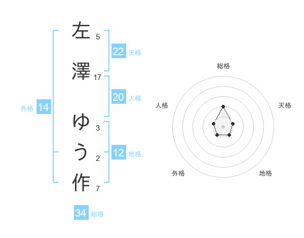 左澤 ゆう作さんを姓名の画数から五運を鑑定