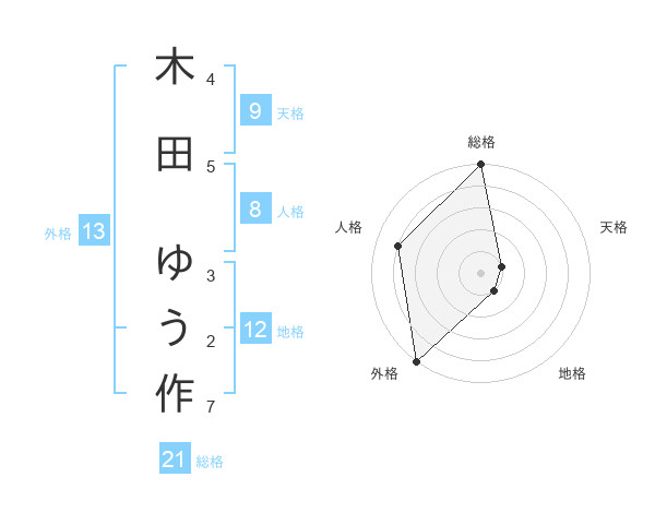 木田 ゆう作さんの外格は13画の5点!