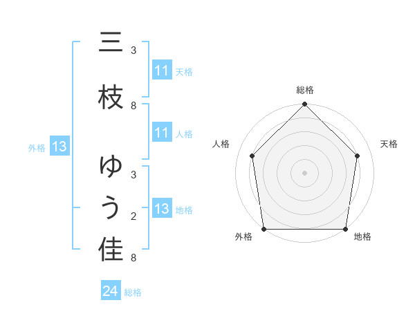 三枝 ゆう佳さんを姓名の画数から五運を鑑定