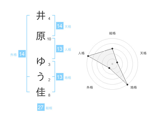 井原 ゆう佳さんを姓名の画数から五運を鑑定