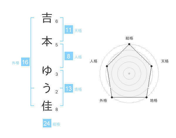吉本 ゆう佳さんの外格は16画の5点!