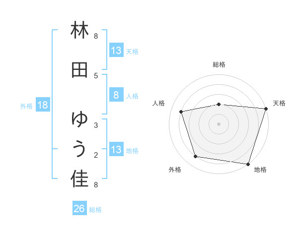 林田 ゆう佳さんの総格は26画の2点