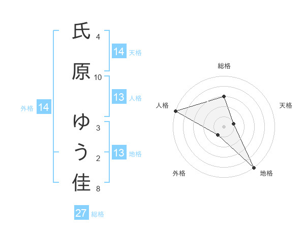 氏原 ゆう佳さんを姓名の画数から五運を鑑定
