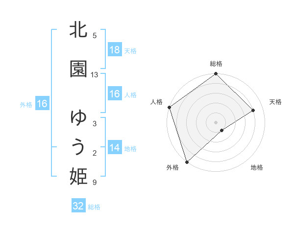 北園 ゆう姫さんの天格は18画の4点!