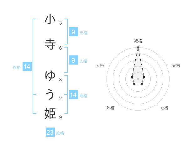 小寺 ゆう姫さんを姓名の画数から五運を鑑定