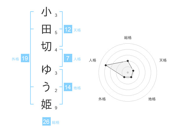 小田切 ゆう姫さんの総格は26画の2点!