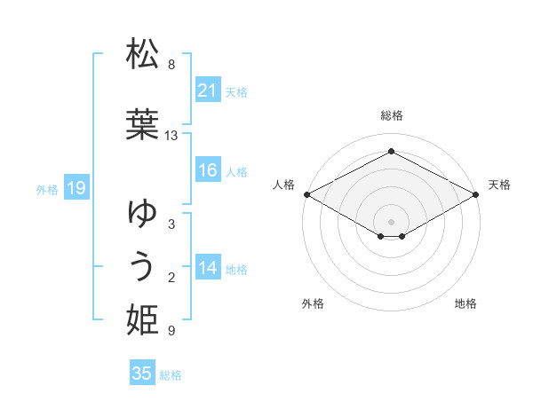 松葉 ゆう姫さんを姓名の画数から五運を鑑定