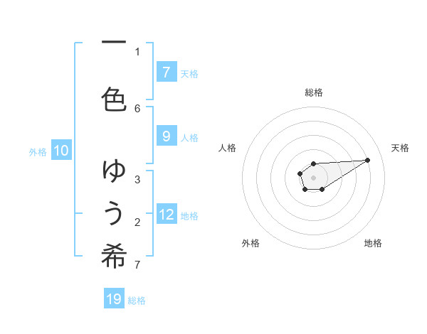 一色 ゆう希さんの天格は7画の4点!