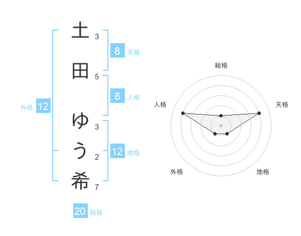 土田 ゆう希さんを姓名の画数から五運を鑑定