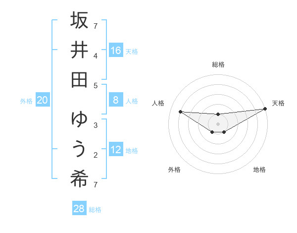 坂井田 ゆう希さんを姓名の画数から五運を鑑定