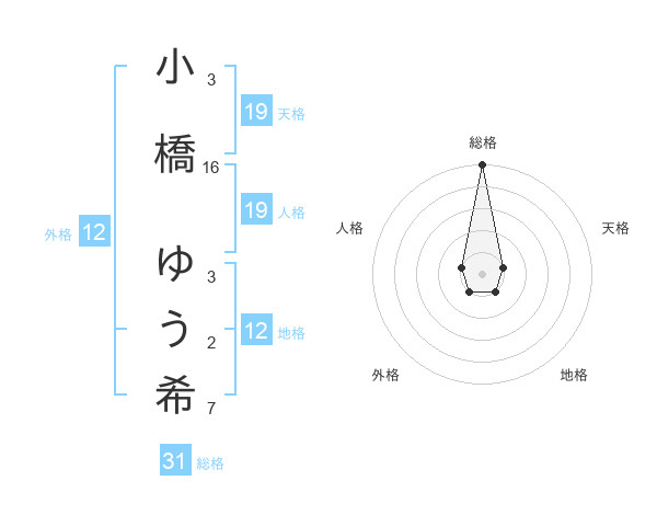 小橋 ゆう希さんを姓名の画数から五運を鑑定