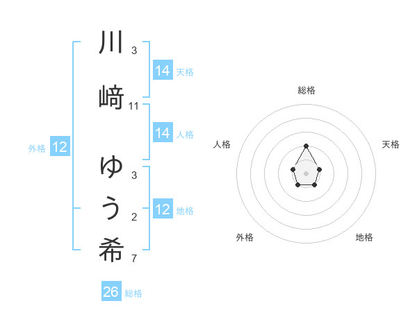 川﨑 ゆう希さんの地格は12画の1点