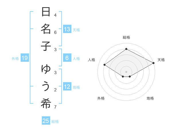 日名子 ゆう希さんを姓名の画数から五運を鑑定