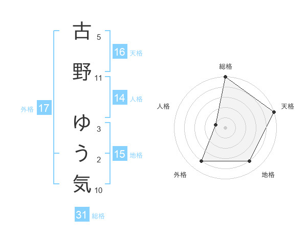 古野 ゆう気さんを姓名の画数から五運を鑑定