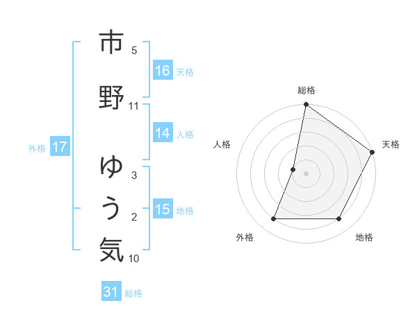 市野 ゆう気さんを姓名の画数から五運を鑑定