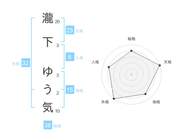 瀧下 ゆう気さんを姓名の画数から五運を鑑定