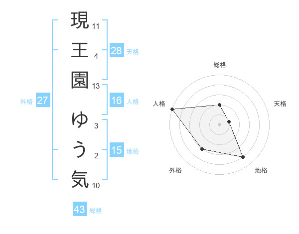 現王園 ゆう気さんを姓名の画数から五運を鑑定