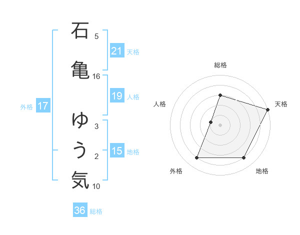 石亀 ゆう気さんを姓名の画数から五運を鑑定