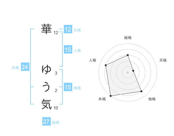 華 ゆう気さんを姓名の画数から五運を鑑定