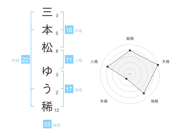 三本松 ゆう稀さんの外格は22画の1点!