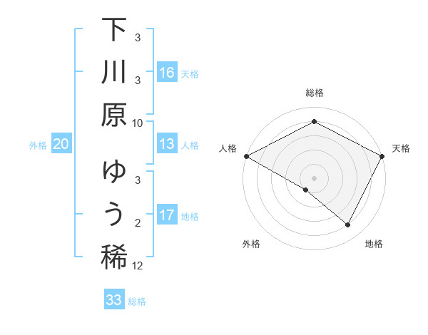 下川原 ゆう稀さんの地格は17画の4点!