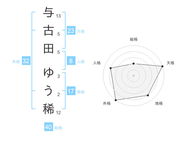 与古田 ゆう稀さんを姓名の画数から五運を鑑定