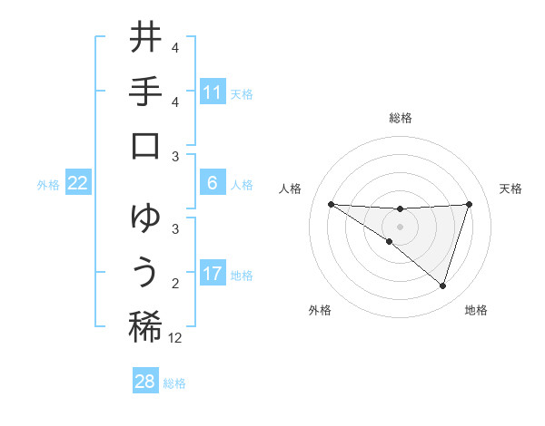 井手口 ゆう稀さんを姓名の画数から五運を鑑定