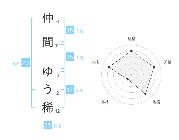 仲間 ゆう稀さんを姓名の画数から五運を鑑定